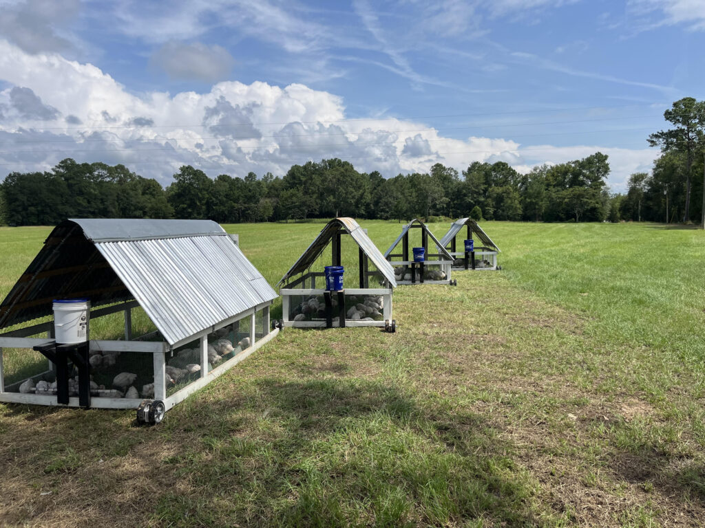 These are our 'chicken tractors' where we raise fresh, pasture raised chicken.